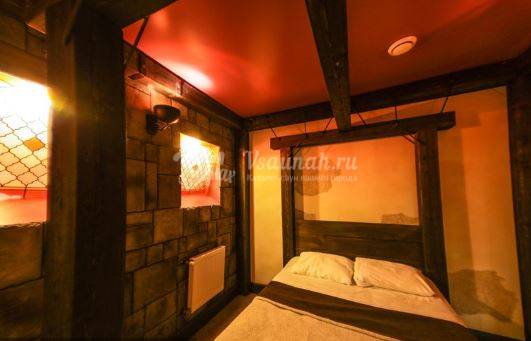 С парной, джакузи, купелью. В средневековом стиле.