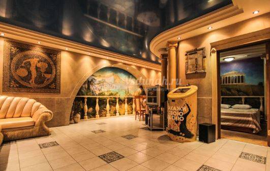 Комната отдыха, бассейн, купель, парная.
